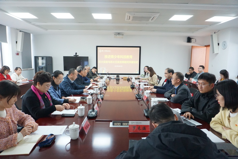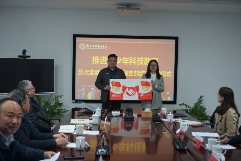 为深入学习贯彻党的二十大精神,进一步弘扬科学家精神,探索青少年科技创新人才培养新路径,4月7日下午,“推进青少年科技教育”苏大五院——苏大实验支部结对共建仪式在91网站 实验学校举行。苏大实验学校相关校领导、各党支部书记、科技教育教师代表,91网站 光电学院及兄弟院部相关领导、支部委员出席本次仪式。