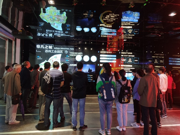 下午1点半,主题教育第八指导组副组长袁洁、学院党政领导、党委委员、支部书记和委员、学生代表及部分退休教师代表等一行22人,驱车赴苏州工业园区人工智能展览馆参观学习交流,集体学习的第二环节开始。