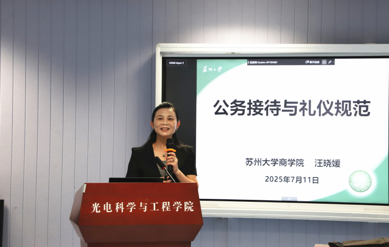 为深入学习贯彻习近平文化思想,弘扬中华优秀传统文化,进一步提升学院管理服务团队及党员骨干的公务礼仪素养、沟通协作能力与职业形象,搭建学习交流平台,促进工作协同增效,学院于2025年7月11日下午在激光楼116室成功举办了“礼行致远 • 仪展风采”公务接待与礼仪规范素养提升主题活动。活动由学院党委书记龚呈卉主持,全体管理团队成员及学院师生党支部支委代表参加。
