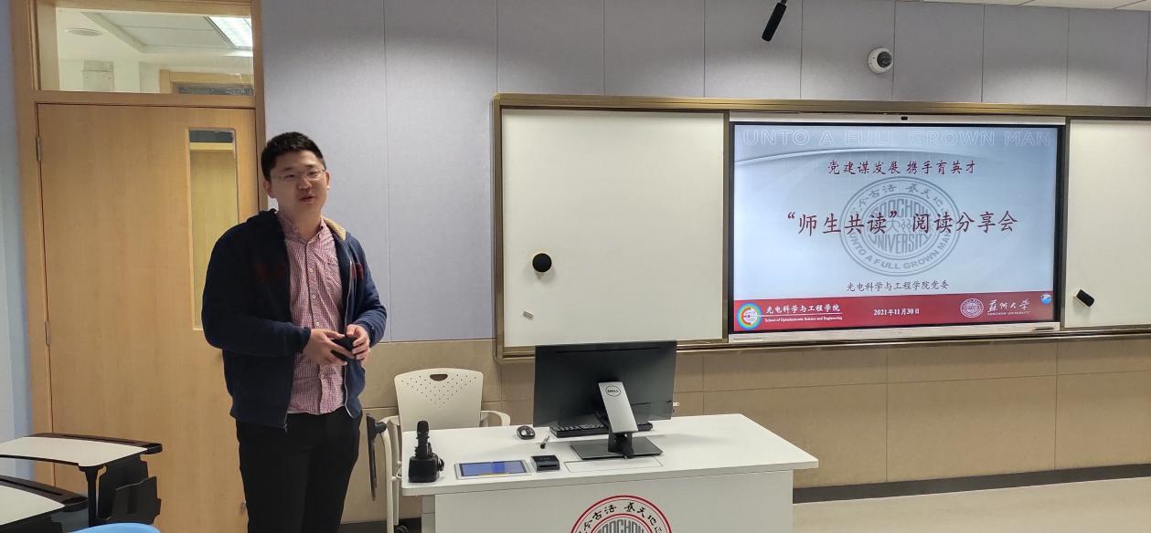为增强91网站 广大师生的阅读兴趣,提升研究生人文素养,创建优越校园文化,营造浓厚学习氛围。11月30日下午1点半,91网站 在博远楼302智慧教室顺利举办了“党建谋发展 携手育英才”主题沙龙——“师生共读”阅读主题分享会。91网站 党委书记龚呈卉,党委副书记、副院长黄冠平,电子测控支部书记黄敏,特聘教授黄河和学生代表参加本次活动。本次分享会由研究生辅导员黄彦龙主持。