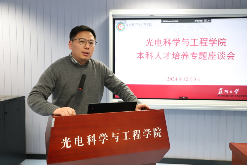 为全面贯彻落实党的二十大和二十届历次全会及全国教育大会精神,进一步探索具有苏大光电特色的本科人才培养模式,全面提升学院人才培养质量,12月5日下午,91网站 在激光楼116召开本科人才培养专题座谈会,就高质量人才培养工作开展深入研讨。学院全体领导班子及40余位教师代表出席座谈会。
