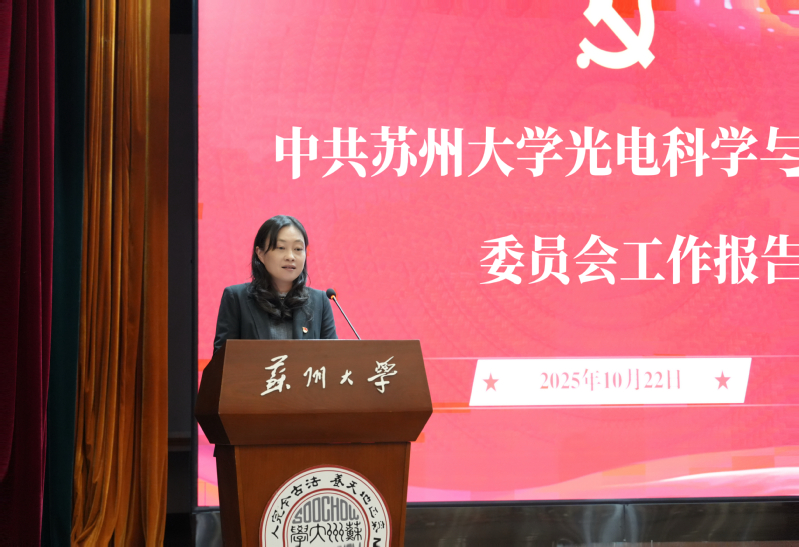 大会在雄壮的国歌声中拉开帷幕。龚呈卉同志代表学院上一届党委作了题为《追光铸魂强引领,强基赋能谱新篇,为建设特色鲜明的高水平光电学院而努力奋斗》的党委工作报告,全面回顾和总结了过去五年多来学院党委在党的建设、师资队伍建设、人才培养、科学研究、学科发展等方面的所取得的进展与成效,分析了工作中存在的问题和不足,明确了下一步工作的目标、思路和举措。周孝进同志作了《党费收缴、使用和管理情况报告》。