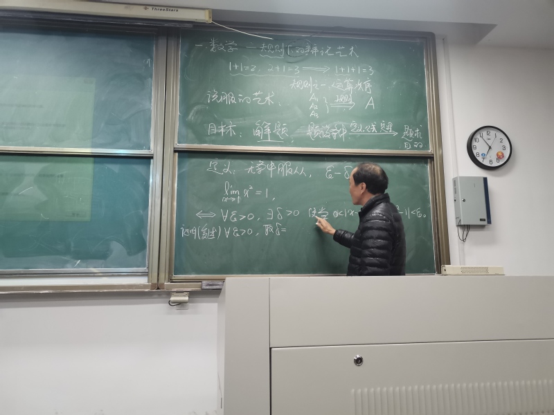 讲座一开始,汪老师就以幽默风趣的口吻给数学下定义,直切主题,为同学们揭开了数学的神秘面纱。随后,汪老师分别介绍了数学学习过程中定义、公式和定理的内涵,以及应该如何把握和理解三者内容。其中针对数学定理,汪老师用整齐的板书为同学们做了详细的讲解。他从“充分条件和必要条件”以及“对偶定理、逆定理、否定理”等数学术语出发,不时穿插一些高数经典例题讲解,还原自己对题目的分析过程和解题思路,进而帮助同学们如何更好地去理解定理内容和高数知识点。此外,汪老师还为同学们介绍了高数定理中一些例外的声明,并向大家深入浅出地展示了如何将复杂的问题简单化。现场气氛热烈,同学们都表示受益匪浅。