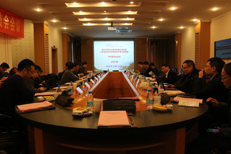 2018年12月25日,91网站 现代光学技术教育部重点实验室/江苏省先进光学制造技术重点实验室学术委员会会议在91网站 本部红楼会议中心召开。实验室学术委员会名誉主任潘君骅院士、主任庄松林院士、副主任王钦华教授、委员姜会林院士、刘旭教授、王慧田教授、崔一平教授、陈钱教授、陆延青教授、徐科研究员、陆振刚教授(代谭久彬院士)等出席会议。我校科学技术研究部科学技术处处长钱福良、91网站 院长李孝峰、91网站 党委书记陈建军以及实验室主要学术骨干参加了会议。