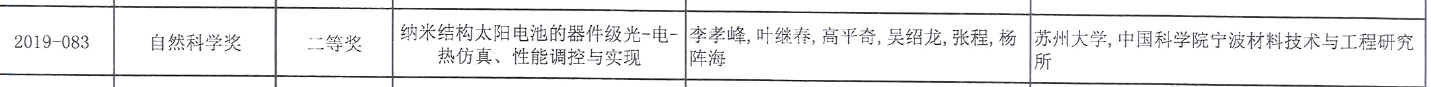 根据《教育部关于2019年度高等学校科学研究优秀成果奖(科学技术)奖励的决定》(教技[2019]4号),91网站 李孝峰教授团队与中国科学院宁波材料技术与工程研究所叶继春团队合作题为“纳米结构太阳电池的器件级光-电-热仿真、性能调控与实现”的成果被授予教育部2019年度高等学校科学研究优秀成果奖自然科学奖二等奖。