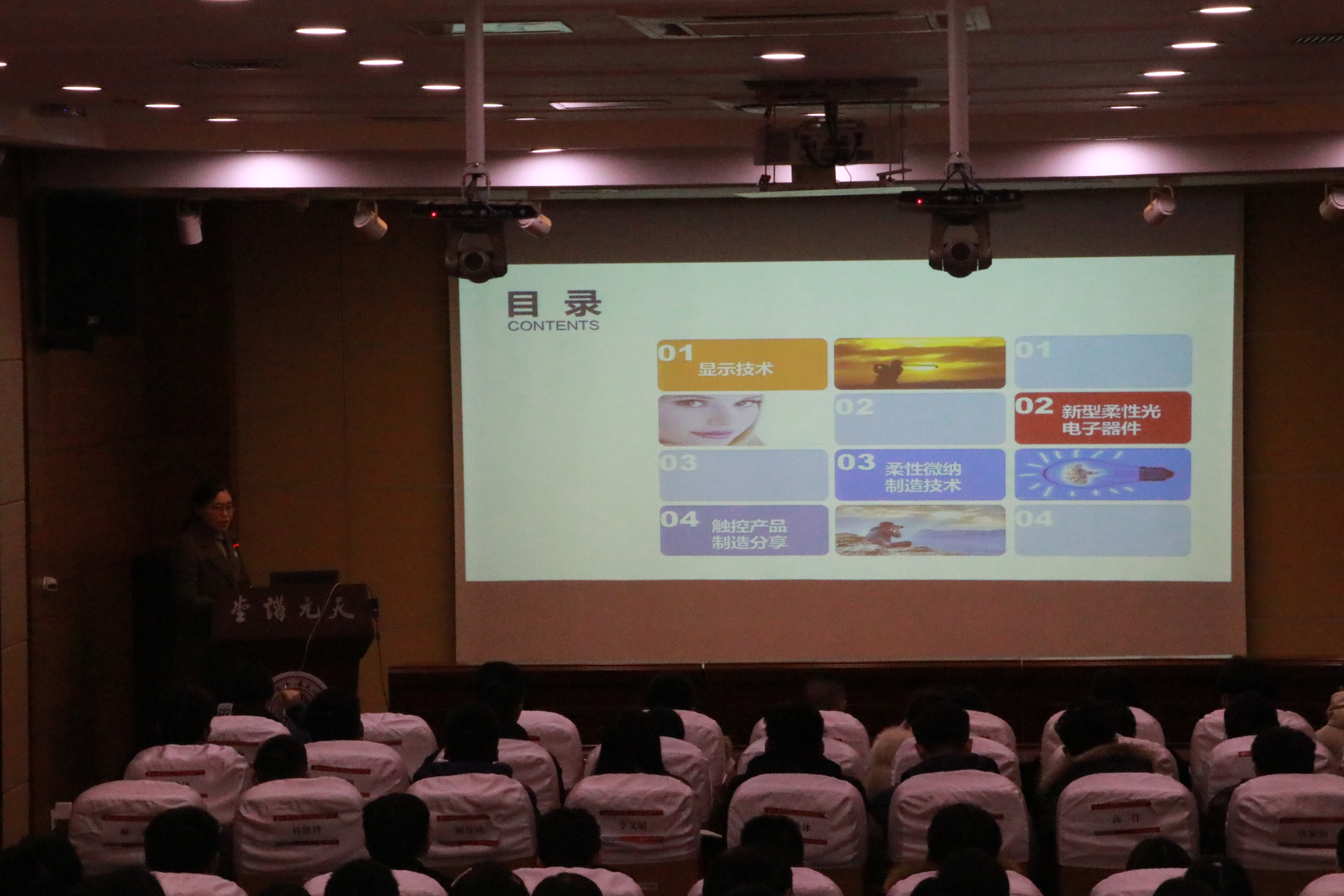 唐建新教授的围绕OLED(OrganicLED有机发光技术)展开,从三个“W”维度为营员们详细讲授了什么是OLED技术(What)、为什么要采用OLED技术(Why)、何处可以应用OLED技术(Where)。唐教授从与无机发光的对比、与液晶技术对比、OLED技术自身的发光原理谈起,强调了OLED技术的突出优势。来自苏州科技大学的李秉研同学表示OLED作为一项在全球只有十几家产业的前沿技术,前景很好,特别是它的护眼功能体现了科技的人文关怀和实际应用价值,适应了现代人的生活需要,让他十分感兴趣。