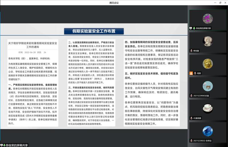 随后,陈俊荣老师对学院上半年实验室安全工作情况作简要通报,并对暑假期间的实验室安全工作进行了部署。