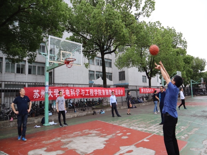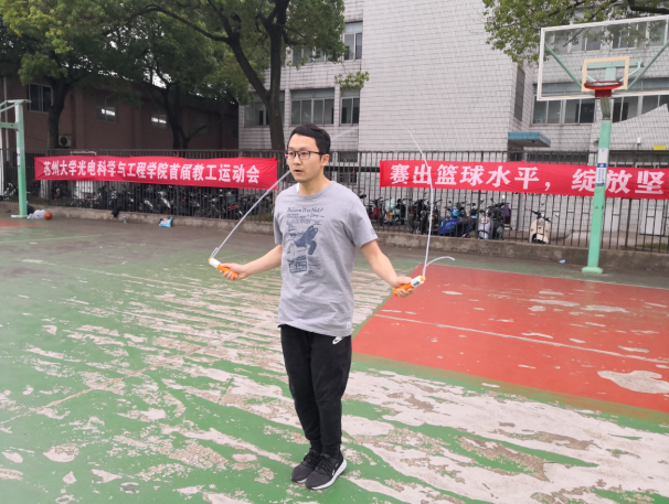 此次运动会由学院分工会组织,设男教职工组与女教职工组两个组别,每组各设20米握拍持乒乓球折返跑、1分钟跳绳 、定点投篮和1分钟踢毽子等四个竞赛项目,近三十位教职工参加了此次赛事。