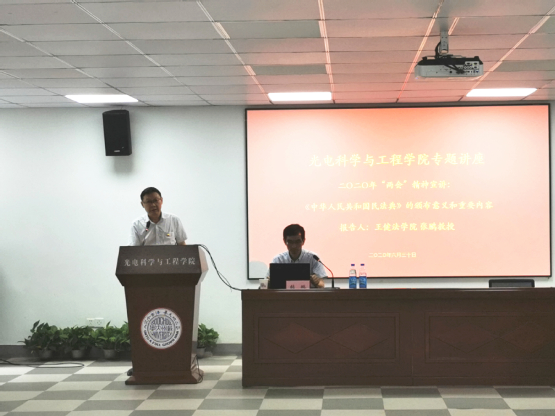 张鹏教授做了题为《二O二O年两会精神宣讲:<中华人民共和国民法典>的颁布意义和重要内容》的专题报告。他从法律的基本涵义出发,引导在座各位逐步了解《中华人民共和国民法典》的内涵及重大意义,并回顾了《中华人民共和国民法典》的制定过程和框架结构。他重点就大家社会生活中比较熟悉和重要的热点难点问题从《中华人民共和国民法典》的角度进行了解读,包括:住宅建设用地使用权期满续期问题、死者人格保护、协议离婚冷静期问题、夫妻共同债务的认定、过错责任问题、公平责任问题以及高空抛掷物致人损害问题等。在用时1个半小时的专题讲座中,张鹏教授用幽默风趣的语言,通过一个个具体问题的分析和解读,既为大家普及了法律知识,又让大家具体地、深入地了解了《中华人民共和国民法典》对维护人民权益、促进经济发展和推进全面依法治国所产生的重大影响。