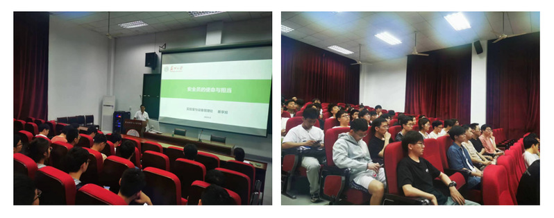 随后,姜享旭以“安全员的使命与担当”为主题,从安全员应具备的素质和能力、从事安全员对社会及个人的意义以及如何成为一名优秀的安全员三个方面出发,阐述了实验室安全工作的重要性。他强调,作为安全员,不仅要有强健的体魄和良好的精神面貌,还需要具备扎实的安全知识储备和化解冲突矛盾的能力。姜老师通过生动的案例和深入浅出的讲解,使参训人员对实验室安全工作的重要性有了更深刻的认识。随后,姜老师针对暑期实验室安全重点工作进行了详细介绍,为即将到来的暑期实验室安全管理工作提供了明确指导。