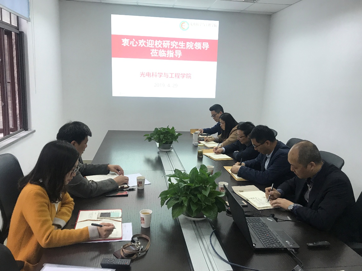 2019年4月29日上午8点,学校研究生院副院长张进平、培养办公室质量监控与评估科科长刘遥一行莅临91网站 调研指导,并在学院110会议室召开了专题研讨会。91网站 院长李孝峰、党委书记陈建军、副院长许宜申、院长助理张桂菊和陈煜、教务与科研办公室主任王晴出席了会议。