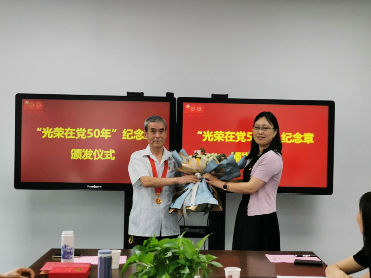 一百年浩浩荡荡,五十年不改初心。在中国共产党成立100周年之际,党中央启动了“光荣在党50年”纪念章颁发工作,91网站 姜亚光和张耀明两位老党员获此殊荣。6月28日上午,学院党委在激光楼311会议室举行了简朴庄重的“光荣在党50年”纪念章颁发仪式,为91网站 党龄满50周年的老党员颁发纪念章。张耀明作为老党员代表出席了颁发仪式。学院党委书记龚呈卉首先向91网站 老党员致以崇高敬意和诚挚问候,并向张耀明颁发“光荣在党50年”纪念章。