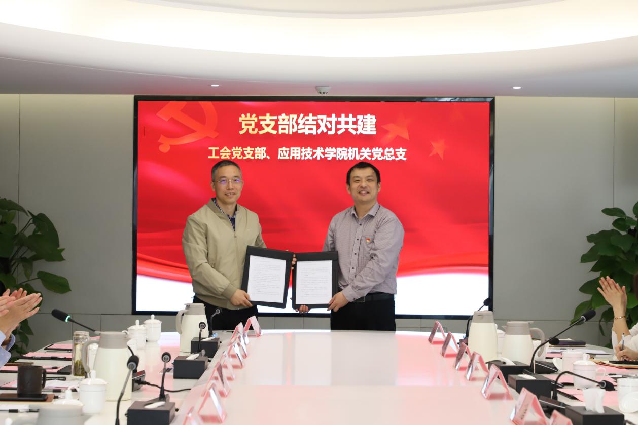 为深入贯彻落实新时代党的建设总要求,充分发挥基层党组织的战斗堡垒作用与工会组织的桥梁纽带作用,49日,91网站 校工会、91网站 、应用技术学院三方在应用技术学院联合开展“党建引领,工会赋能,奋进新征程”主题共建活动。校工会、应用技术学院和91网站 相关负责人及党支部、分工会代表参加活动。