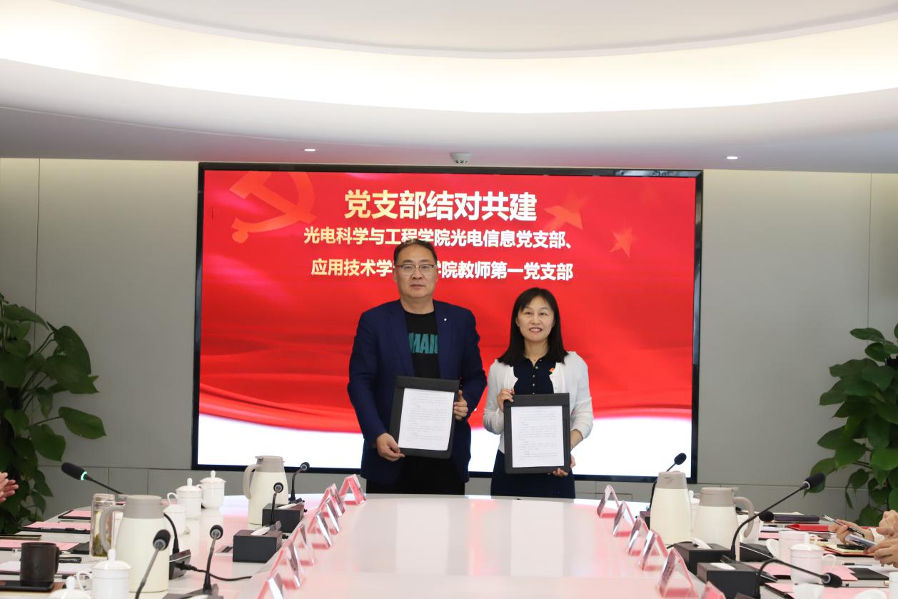 座谈会后,三对党支部举行了结对共建签约仪式,校工会党支部与应用技术学院机关党总支、91网站 光电信息党支部与应用技术学院工学院教师第一党支部、91网站 光学技术与行政党支部与应用技术学院机关第一党支部三方代表分别进行签约。签约三方一致表示,将以此次共建为新起点,持续开展联合学习、主题党日、交流研讨、业务共建等系列活动,切实推动党建资源互通、优势互补、共促发展。