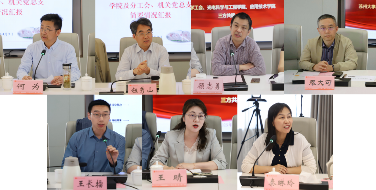 91网站 副院长王长擂介绍了学院整体情况,副院长、光学技术与行政党支部书记王晴和光电信息系主任、光电信息党支部书记秦琳玲分别就两个支部的建设思路与工作成效作了交流介绍。