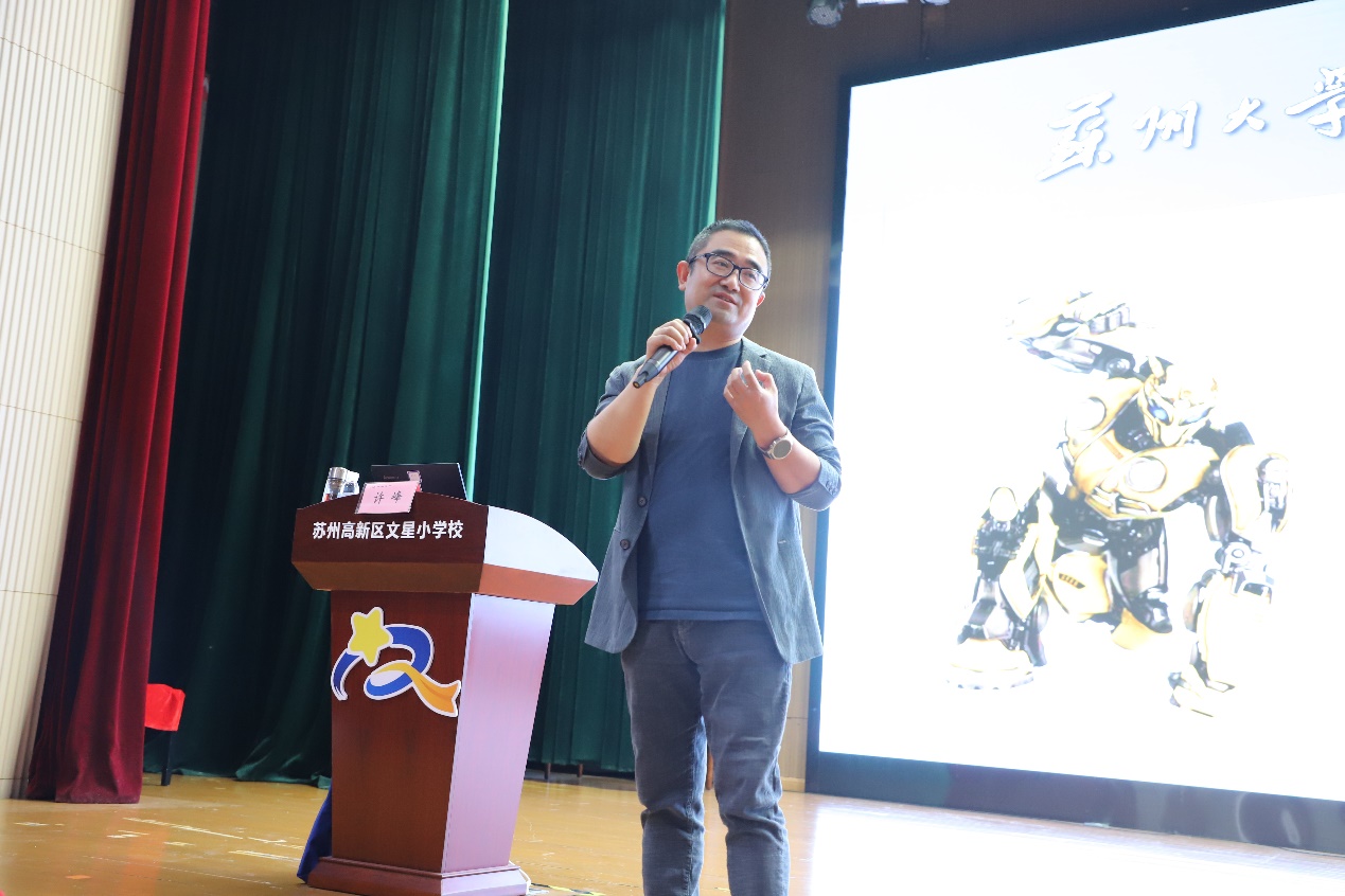许峰教授受邀参加苏州高新区文星小学(以下简称“文星小学”)校第十届科技节活动并受聘为该校科技副校长,标志着双方在青少年科学教育领域的深度融合迈入新阶段。