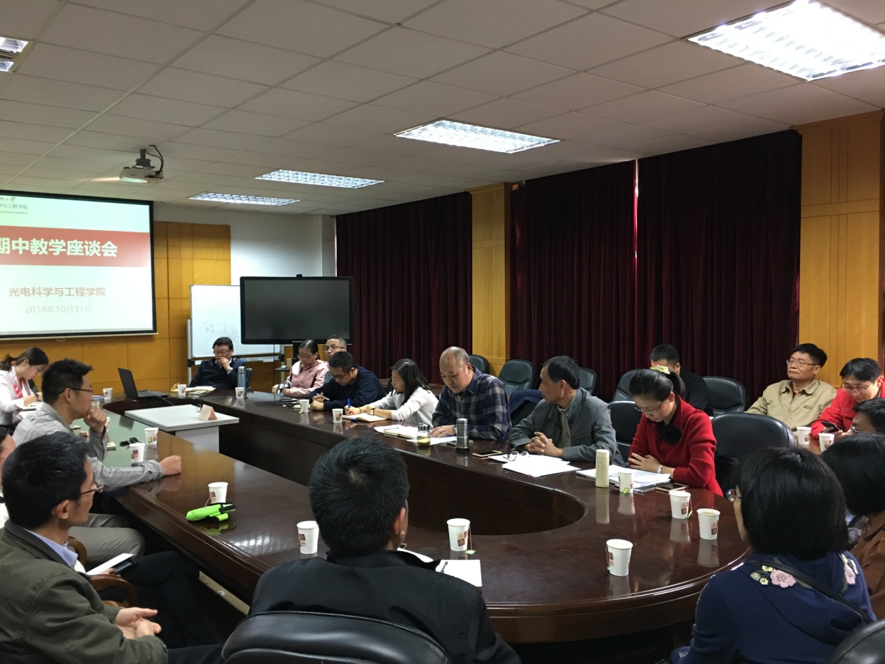 2018年10月31日下午15:00,学院在现光所三楼会议室召开了期中教学教师座谈会。