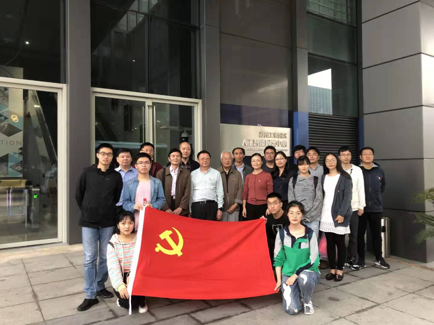 下午1点半,主题教育第八指导组副组长袁洁、学院党政领导、党委委员、支部书记和委员、学生代表及部分退休教师代表等一行22人,驱车赴苏州工业园区人工智能展览馆参观学习交流,集体学习的第二环节开始。