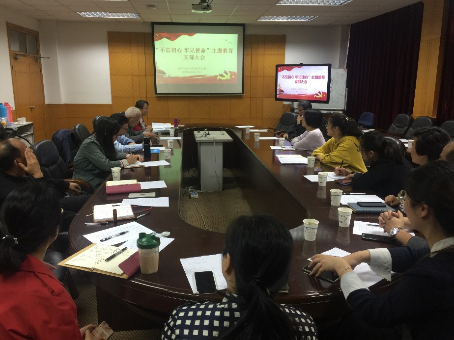 10月18日上午,学院光学技术与行政党支部与苏大维格党支部,在现代光学技术研究所三楼会议室联合召开了“不忘初心、牢记使命”主题教育。中国工程院院士潘君骅院士应邀出席了活动。活动由光学技术与行政党支部书记曲宏主持。