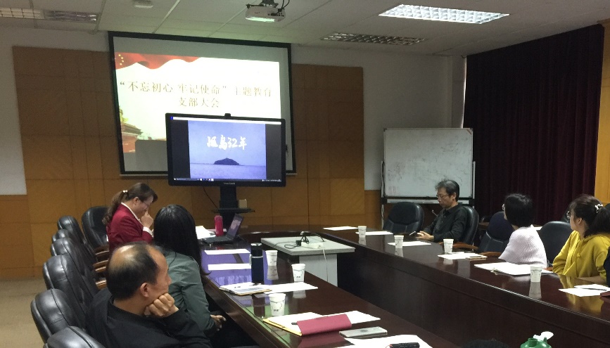 活动第三部分,全体党员观看了短片《孤岛32年》。《孤岛32年》讲述了全国时代楷模王继才32年来与妻子王仕花以岛为家,与艰苦为伴,把青春年华全部奉献给了祖国海防事业的感人事迹。王继才夫妇在没有淡水、没有电、面积仅0.013平方公里的开山岛上,勤勤恳恳、默默坚守。32年来,他们克服了常人难以想象的困难,守卫孤岛,用无怨无悔的坚守和付出,在平凡的岗位上书写了不平凡的人生华章,用实际行动践行了“不忘初心、牢记使命”的精神实质,用生命诠释了共产党员的使命和担当。