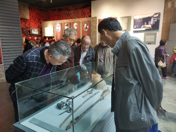 参观过程中,老同志们边看历史文物,边分享自己了解的抗战故事。话题总是离不开新四军、芦苇荡以及在这片抗日卫国红土地上,星罗棋布的芦荡火种汇聚成抗战的熊熊烈焰,给予侵华日军以沉重打击的历史史实与动人故事。