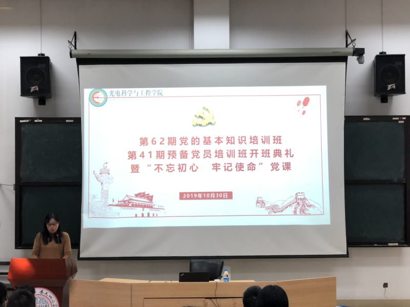 为端正入党积极分子和预备党员的入党动机,提高全体党员的党性修养,91网站 于10月30日下午在现光所三楼举行分党校第六十二期党的基本知识培训班暨第四十一期预备党员培训班开班典礼,并邀请学院党委书记陈建军老师为全体学员作了“不忘初心、牢记使命”的主题党课。活动由学院党委副书记、副院长龚呈卉主持。