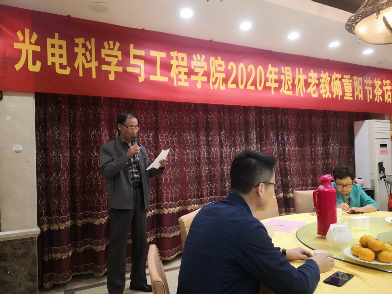 为发扬中华优秀传统文化,搭建老同志和在职人员交流平台,91网站 于10月22日上午在东吴饭店举办2020年退休老教师重阳节茶话会。本次活动由学院党委与分工会统一部署,以“共庆双甲子,谋划新发展”为主题,旨在感谢学院老同志对光电学院的关心与支持,向老同志汇报学校与学院近期的主要工作,共庆91网站 建校120周年。