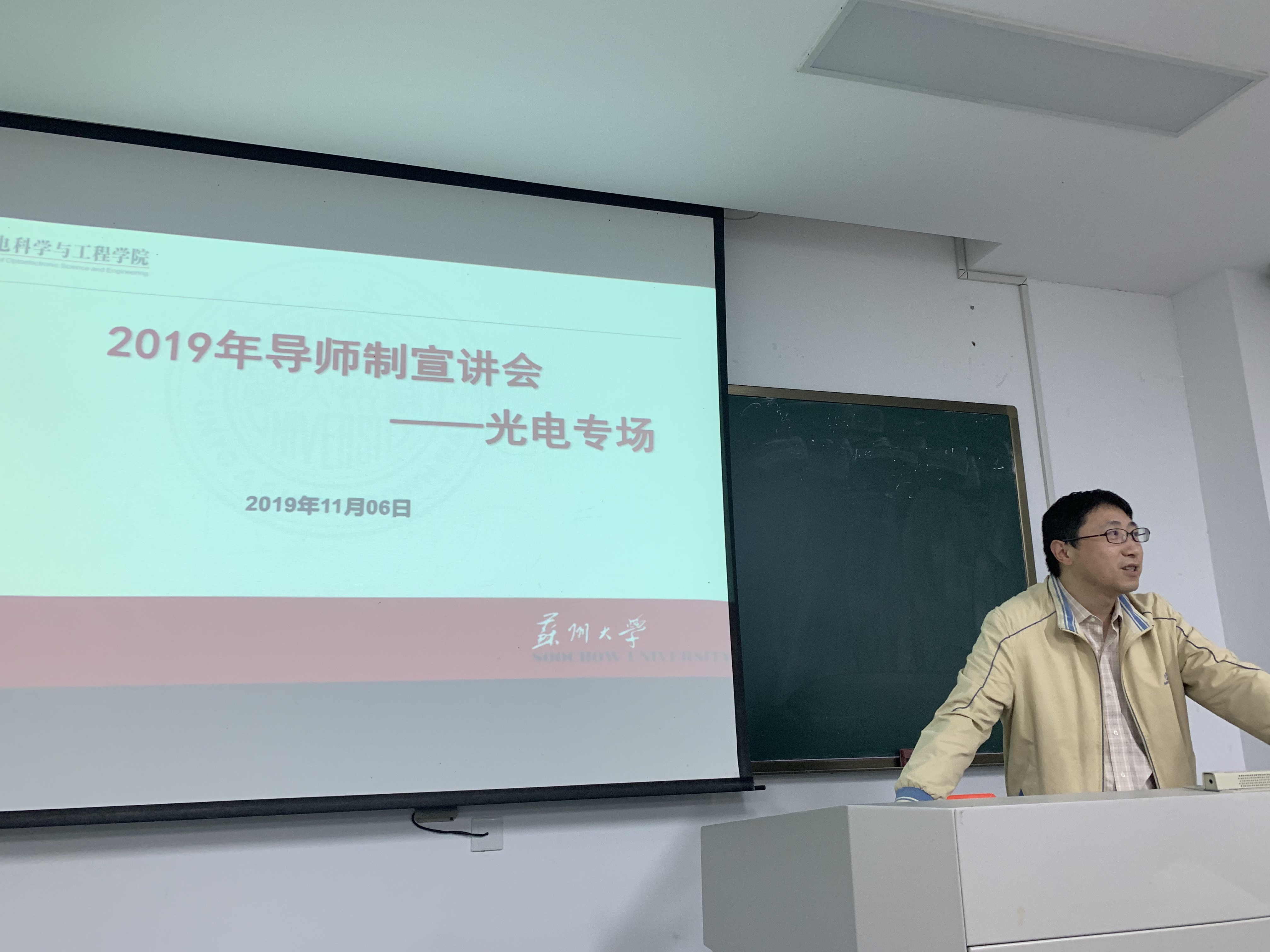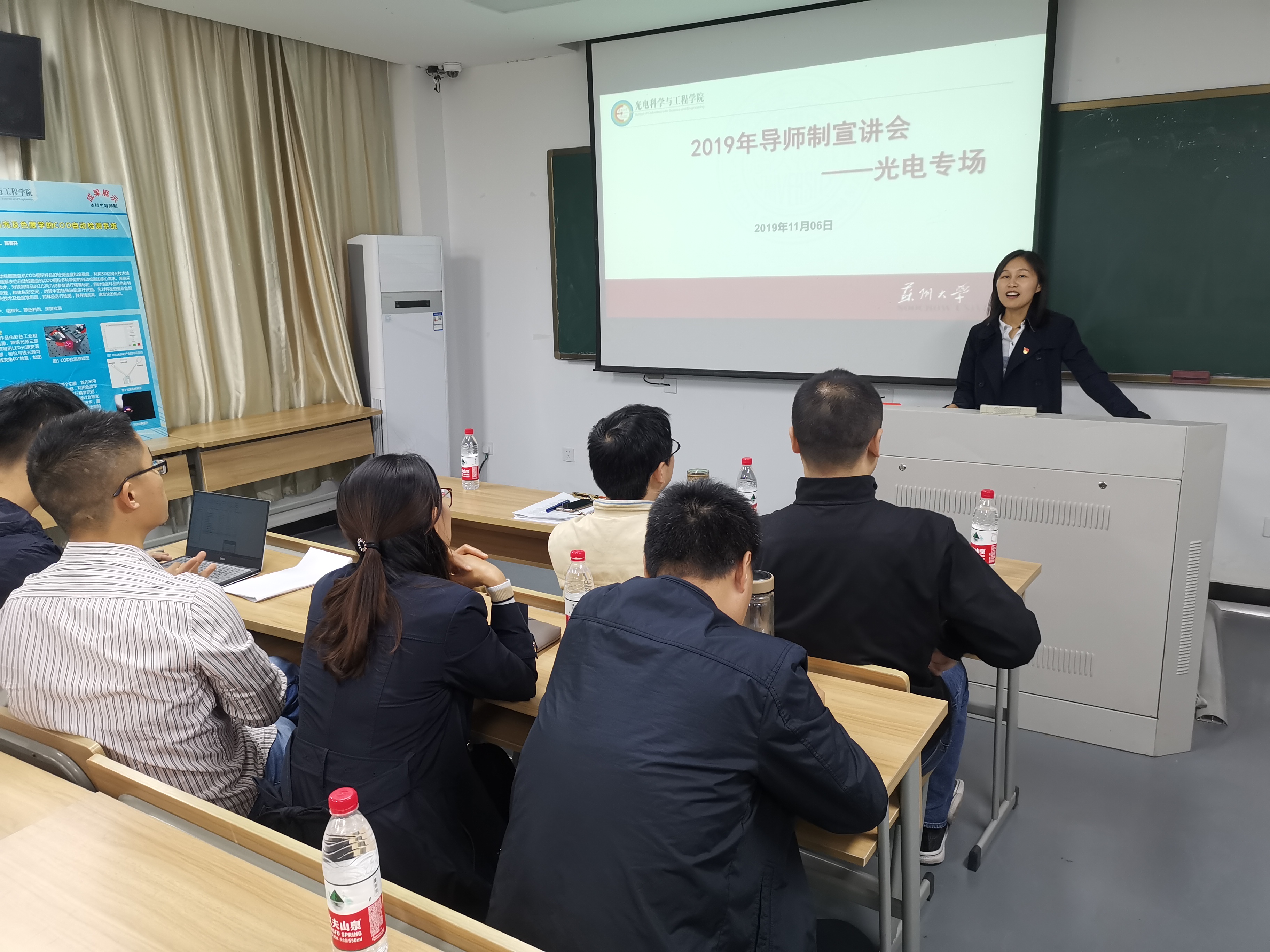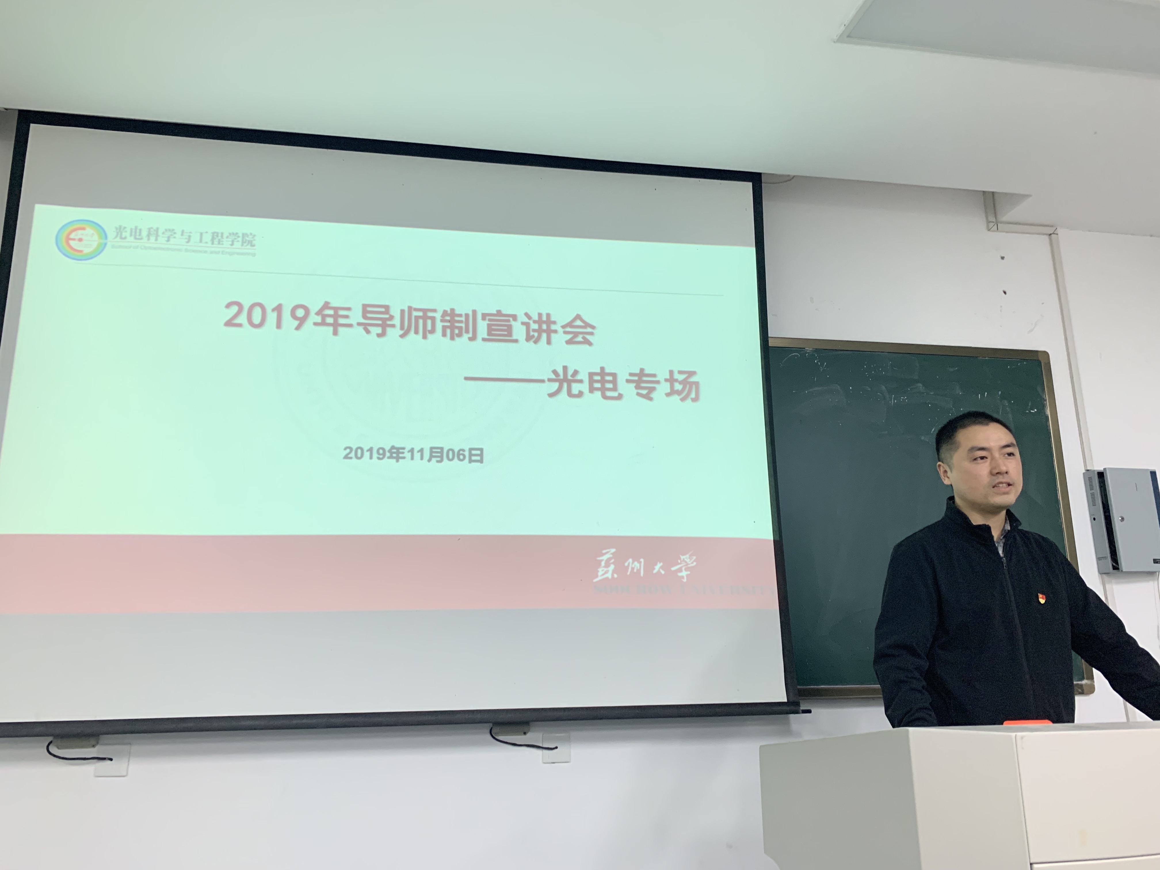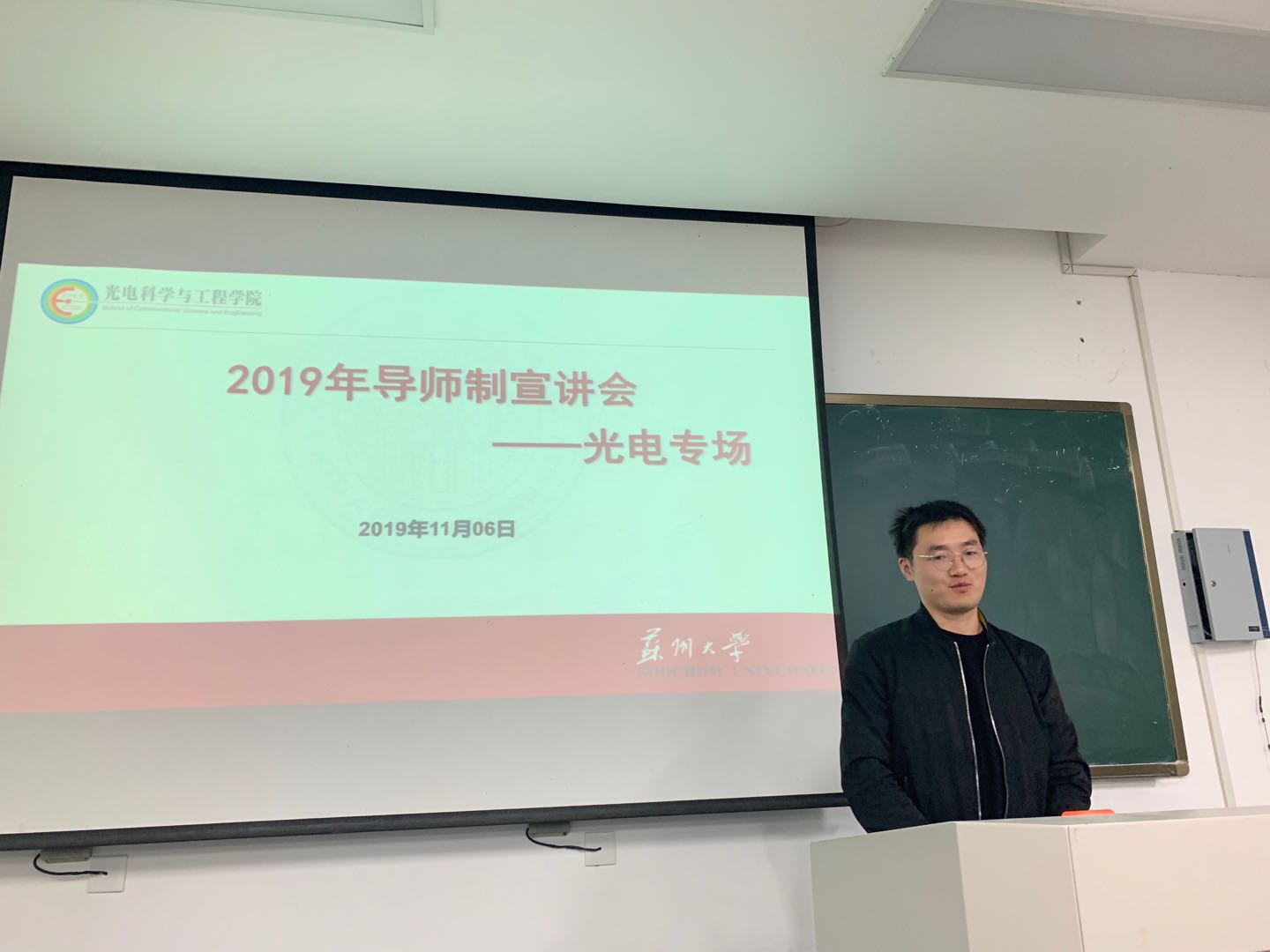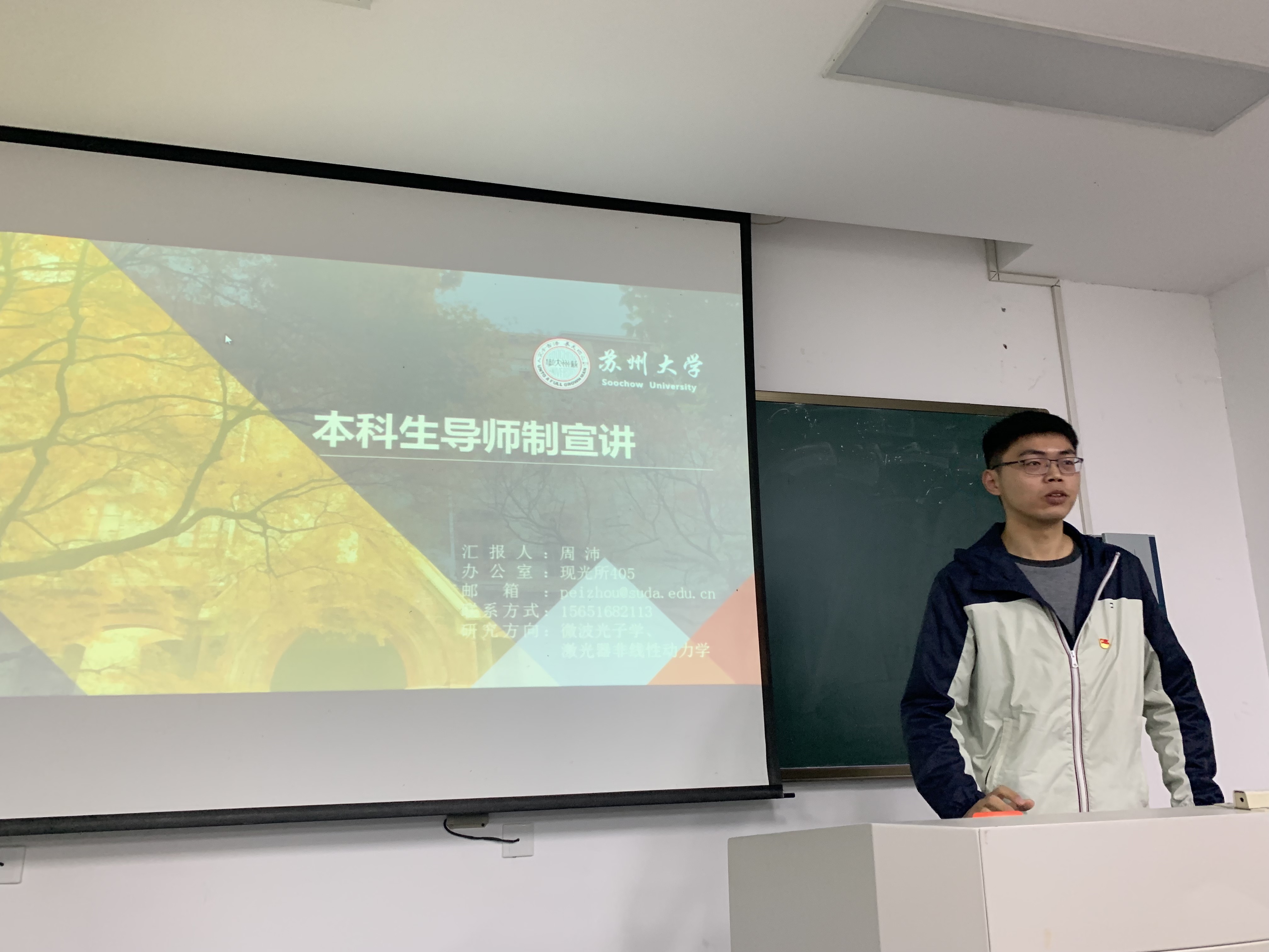 14:00在鸿远楼101开始2019年本科生导师制宣讲会主题党日活动,活动由学院学工办主任周孝进主持。支部8位党员老师参加了此次活动。2018级光信息专业所有本科生、2019级光信息专业部分本科生、以及2016级和2017级部分优秀本科生代表参加了该活动。