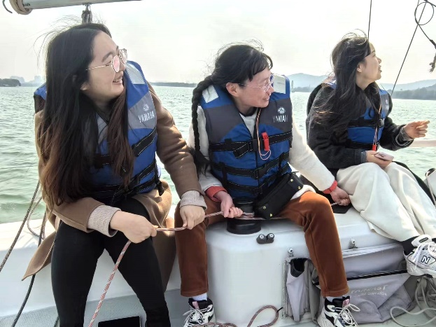 随着帆船体验活动的开启,在专业指导人员的讲解下,大家了解了帆船运动的来源和基本技巧。随后,大家纷纷结伴上船,体验乘风破浪的乐趣。有的沉浸于暖阳和轻风之中,在船上欣赏碧波与美景;有的则在专业人员的指导下,齐心协力、挑战自我,勇敢且冷静地调整船帆和船舵。在宽阔的湖面上航行,体育运动带来的健康与快乐荡涤着每位参与者的身心,湖水和浪尖见证了每位女教职工的热情与活力。