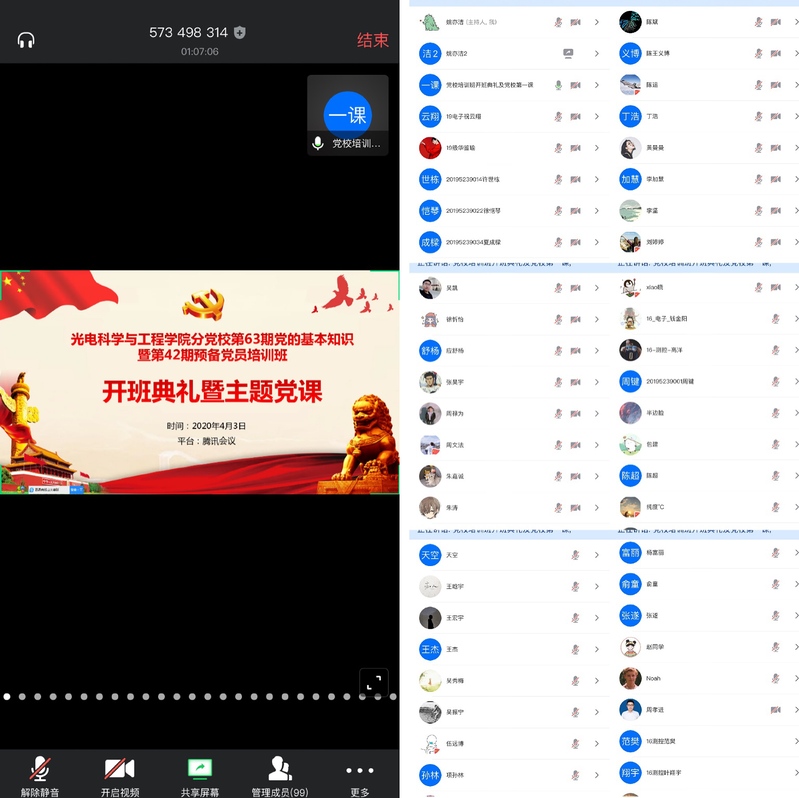 党课结束后,各党支部分别组织开展了线上“云讨论”活动。各位党员和入党积极分子结合此次党课学习的内容,积极分享了自己对当前疫情防控工作的思考。同学们在讨论过程中相互碰撞思想火花,更加充分地认识了在新时代新要求下当代青年大学生所承担的责任,也更加明确了自己今后努力和前进的方向。