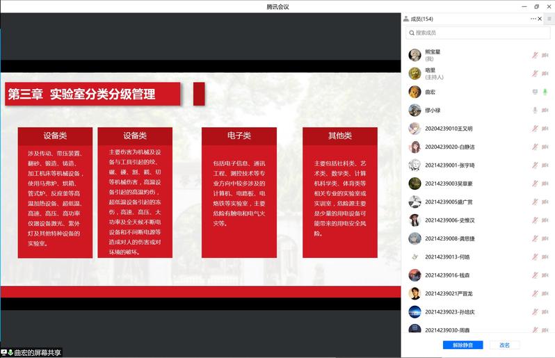 为贯彻教育部关于加强全国高校实验室安全管理工作会议精神,落实2022年“安全生产月”活动,营造浓郁的安全文化氛围,切实做好学校疫情防控常态化下的实验室安全工作,6月30日上午,91网站 召开了实验室安全工作视频会议。曲宏副院长、学院兼职安全员、各教学科研实验室负责人、安全员及各级研究生共154人参加会议。