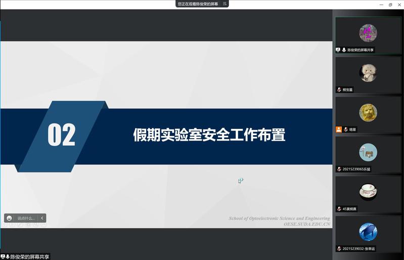 最后,曲院长再次强调了安全工作的重要性,特别是实验室安全,安全工作是重中之重,是所有工作的基础保障。要求全院师生统一思想,提高安全意识,坚守安全红线,保障学院各项工作顺利开展。