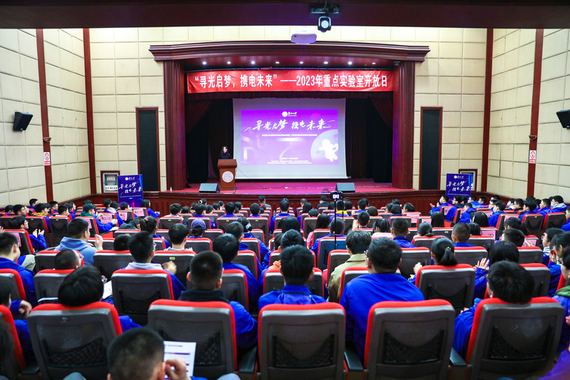 本次开放日活动针对高中生年龄特征,开展了主题科普讲座、“走近科学”实验室参观、“寻光启梦”科技展厅参观、“携电未来”智慧教室小实验以及苏大学子交流等多项环节。教育部现代光学技术重点实验室,江苏省先进光学制造技术重点实验室主任王钦华老师、光电科学与工程学院党委副书记黄冠平老师、苏州大学实验学校副校长王振华老师、苏州大学实验学校副校长蔡斌老师、高中部课程与教学中心主任王长明老师、高中部学生发展中心主任李娟老师、高中部各位优秀教师代表以及实验学校高一、高二的 200 多位同学参与了本次活动。活动由光电科学与工程学院副院长曲宏主持。活动伊始,光电科学与工程学院党委副书记、副院长黄冠平对参与活动的师生表示衷心的感谢和热烈欢迎,希望同学们在今天的活动中能有所收获,有所启迪。