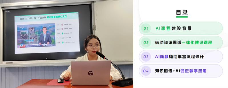 杨程欣老师深耕教育信息化领域多年,拥有丰富的金课建设、智慧课程建设和专业知识图谱建设经验,参与50多门国家级、省级课程建设工作和超100场教师发展培训。她围绕AI课程建设背景、借助知识图谱一体化建设课程、AI助教辅助丰富课程设计以及知识图谱+AI促进教学应用等方面,进行了全面而深入的介绍,并生动展示了依托智慧树平台建设的AI课程案例,为与会教师全方位呈现了未来课程建设的发展趋势。