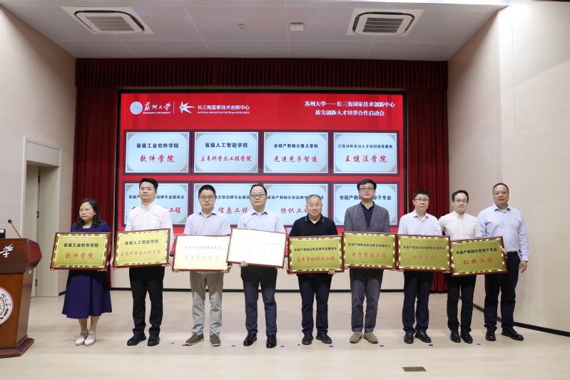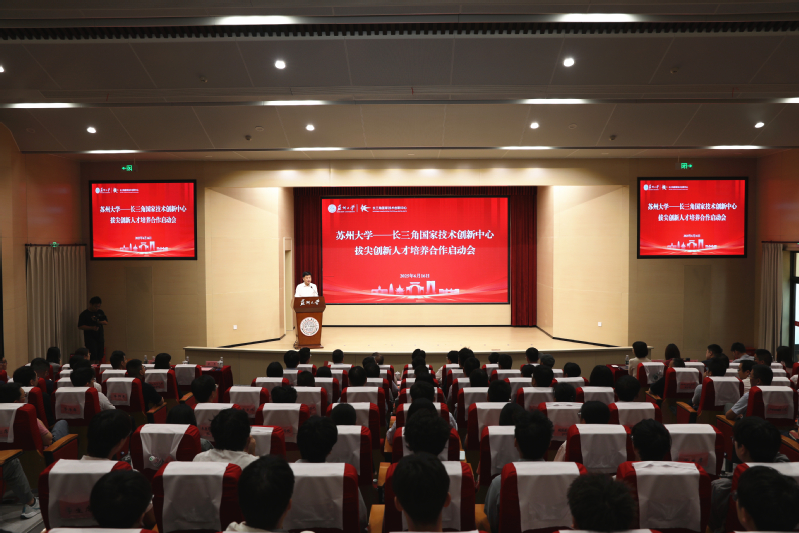 6月16日上午,91网站 —长三角国家技术创新中心拔尖创新人才培养合作启动会召开。苏州市副市长刘博,长三角国家技术创新中心主任、江苏省产业技术研究院院长、上海长三角技术创新研究院院长刘庆,我校校长张桥,党委常委、副校长姚建林出席会议,长三角国创中心、我校相关职能部门、理工医学院(部)负责人,部分师生代表参加会议。