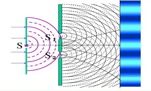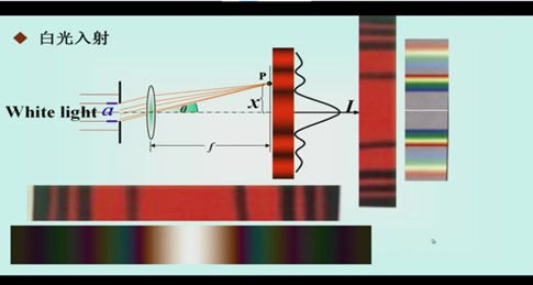 光在行进的过程中遇到障碍物时,出现偏离直线传播的现象被称为光的衍射现象。首先证明光的衍射现象的是德国物理学家夫琅禾费。1821年,夫琅禾费使用点状光源及准直透镜做出平行光束,然后这光束通过狭缝,狭缝后放有另一块透镜,把平行光束聚焦到屏幕上作观测之用,可以在后方屏幕上可以看到成像条纹,同样的设置也可用于多狭缝衍射。