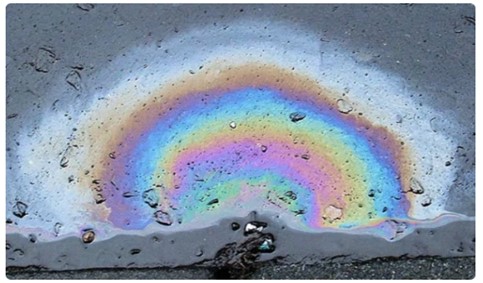 生活中有很多干涉的现象。例如,肥皂泡之所以能呈现五彩缤纷的颜色,是因为在泡泡膜外层的反射光和内层反射光发生干涉。一束光照射到水面上的油滴,在油滴的上下表面也会发生干涉现象。