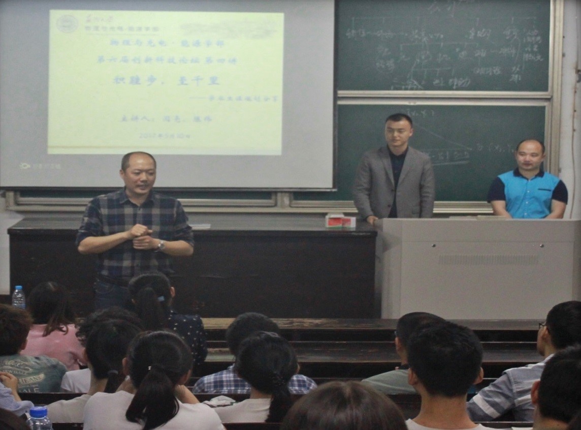 2017年5月10日,光电技术党支部联合本科生第二党支部,组织光电学院2016级全体和14级、15级部分(总计约100名)同学,参加了学部08电子陈伟和09测控闫亮2位优秀毕业生的题为“积跬步、至千里”的学业生涯经验分享会。通过两位学长在校学习经历、工作经历以及生涯规划等介绍,围绕“大学毕业你想要做什么”、“你梦想职业所要求的技能你会多少”、“你未来一年要完成的事有哪些”等问题,既给低年级同学呈现了一场充满热情与奋斗的学习之旅,更为低年级同学的学业规划指出了具体的努力点和奋斗方向,很多同学由衷地表示受益匪浅。