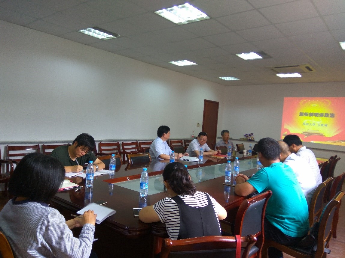 2017年6月30日上午9点半,光电学院党委在博习楼221会议室组织召开了党委理论中心组的专题学习报告会,会上邀请了我校马克思主义学院方世南教授做了题为“旗帜鲜明讲政治”的专题学习报告,学院党委委员、支部书记、支部委员参加了本次学习报告会。