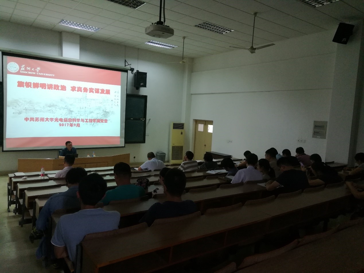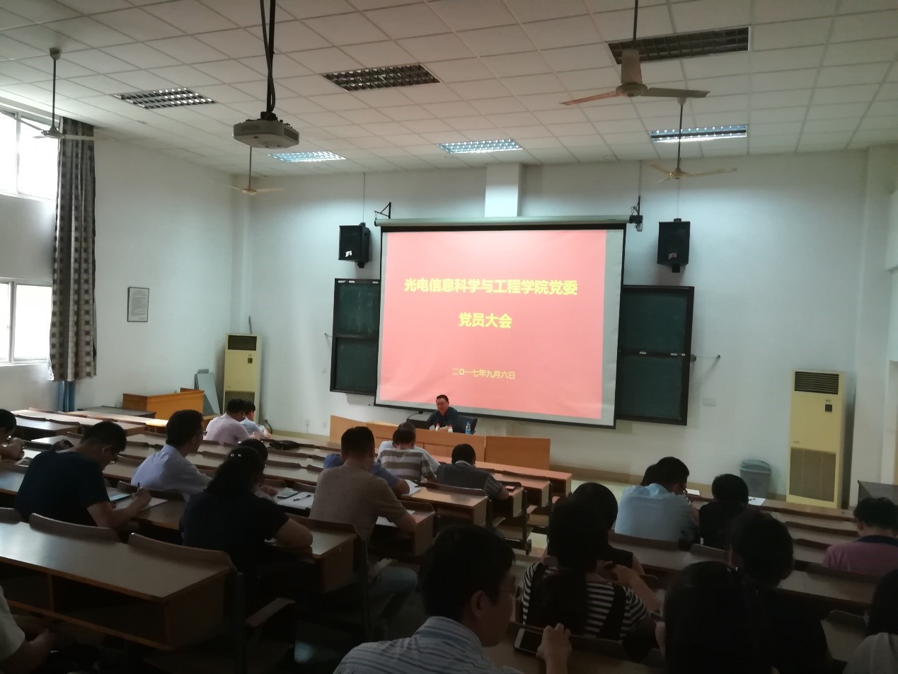 2017年9月6日下午1:30,光电学院党委在现光所阶梯教室召开了全体党员大会,会议由学院党委书记陈建军主持。