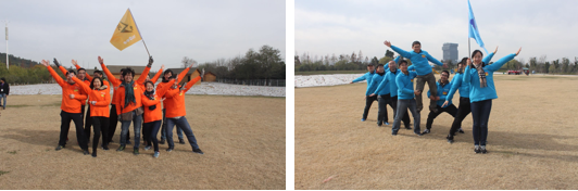 活动开始,党员们组建了红队和蓝队两个团队,红队队名“闪电队”,蓝队队名“大闪电队”。两组还分布进行了风采展示,建立归属感。