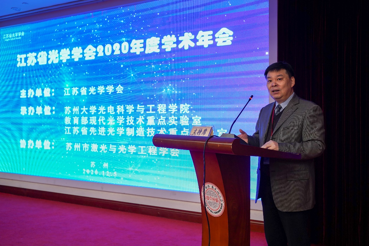 江苏省光学学会2020年度学术年会于12月5日在苏州召开。本次学术年会由江苏省光学学会主办,91网站 、教育部现代光学技术重点实验室、江苏省先进光学制造技术重点实验室承办,苏州市激光与光学工程学会协办。中国科学院院士、南京大学吴培亨教授,中国科学院院士、国家天文台台长常进教授,江苏省科协学会学术部部长李政、副部长徐剑,江苏省光学学会理事长、南京大学副校长王振林,91网站 副校长张晓宏,91网站 院长李孝峰等领导和专家出席了会议。此外,兄弟学会、安徽省光学学会副秘书长伍德侠等相关学会成员参加了会议。今年的学术年会吸引了包括江苏、北京、天津、浙江、安徽等多省市和地区的近200余位光学界同仁参加了大会。大会开幕式由江苏省光学学会副理事长王钦华主持。