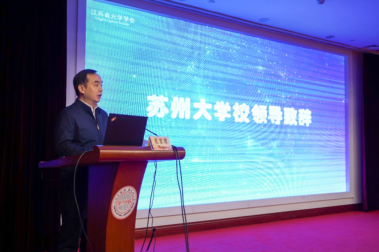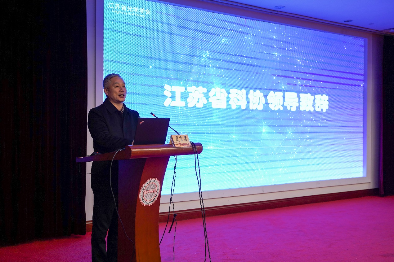 李政代表江苏省科学技术协会对大会的召开表示热烈的祝贺,他指出,当今世界正经历百年未遇之大变局,科技创新已成为发展的第一动力,苏州是一座具有蓬勃创新动力的城市,今年大会在苏州召开希望能促进苏州在光学领域更好的发展,也希望学会坚持学术属性,增进学科交叉融合,打造学术年会品牌效应,将学会建成理念先进、管理规范、充满热情的现代化科技团体。