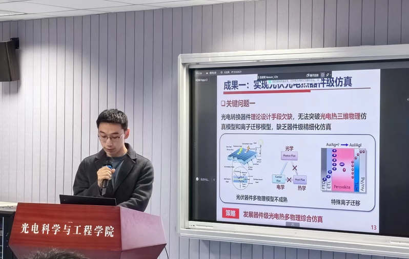 随后,王长擂进行答辩汇报,他围绕“叠层光伏的微观物理机制与宏观性能调控”关键科学问题展开,总结了既往的研究成果,并详细阐述了具体的研究思路。王长擂表示,他将继续瞄准国家“双碳”重大战略目标,围绕关键核心科学问题,加强基础研究,努力推动科研创新和相关成果落地,为推动能源可持续发展贡献力量。