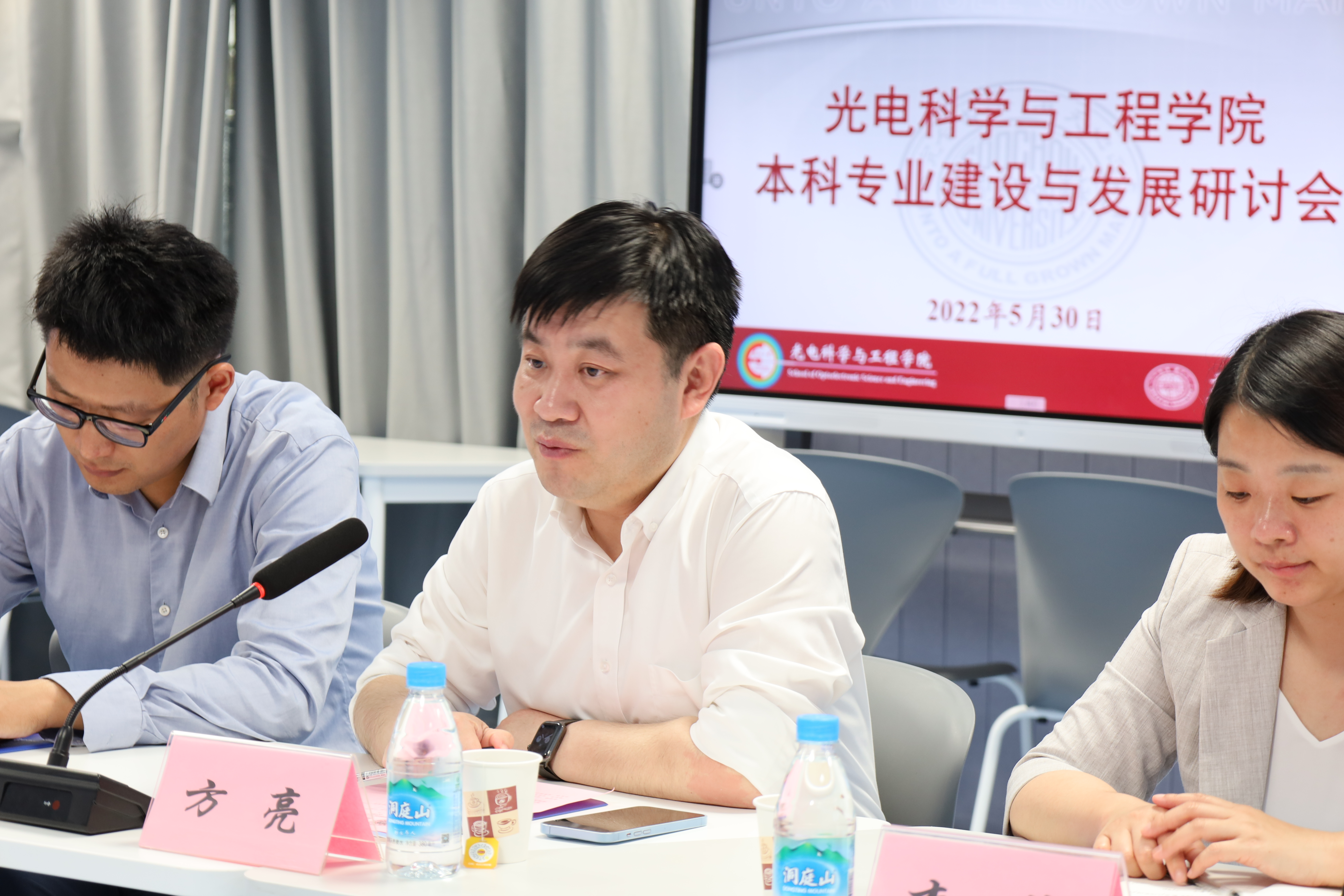 教务处方亮处长在讲话中强调本科专业建设始终是人才培养的重中之重,教务处鼎力支持学院做好人才培养和专业建设工作。同时,对学院本科专业建设发展提出了四点建议和期望:一是依托学科优势和优质资源,深入推进并不断优化产教融合,扎实做好体现光电特色的人才培养模式改革和专业内涵建设;二是做好课程体系优化和专业核心课程建设,以多门一流课程有效支撑一流专业建设;三是打造高水平教学团队,重视教学交流和青年教师业务能力培养,不断提升专业教师教育教学水平,充分保障课堂教学质量;四是加强学生思想道德建设和人才培养中的价值引领,充分发挥课堂主阵地作用和教师潜移默化影响力,培养真正对社会有用的卓越人才。