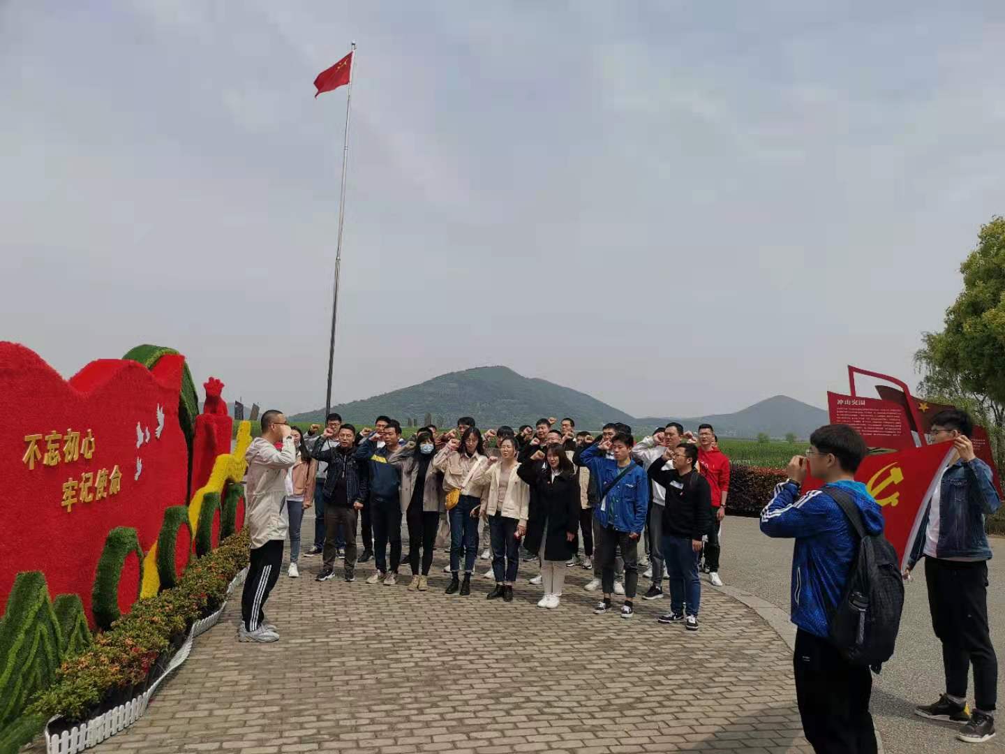 了解了太湖英烈们的抗战事迹后,立于湖畔的国旗下,全体党员重温了入党誓词。游击队员们用他们的生命对入党誓词做出了深刻的诠释,作为新时代的中共党员,我们更应该铭记这段历史,铭记党的这段充满了血和泪的奋斗史,更应该用行动去践行当初的入党誓词。