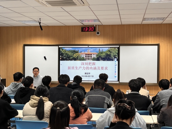 4月17日下午,91网站 在本部博远楼303组织开展2024年学生骨干专题学习会。学院党委副书记、副院长黄冠平为同学们带来了一堂题为《深刻把握新质生产力的内涵及要求》的主题报告。
