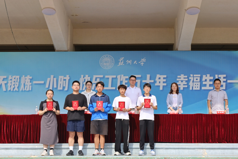 致辞结束后,运动员代表2023级光电信息工程专业研究生戈涛代表全体运动员宣誓;裁判员代表2020级光电信息科学与工程专业陆尚代表全体裁判员宣誓。党委副书记、副院长黄冠平宣布成立各体育俱乐部,学院领导班子成员分别为篮球俱乐部、羽毛球俱乐部、乒乓球俱乐部、足球俱乐部和乐跑俱乐部负责人颁发聘书。最后,在大家的热烈期待中,91网站