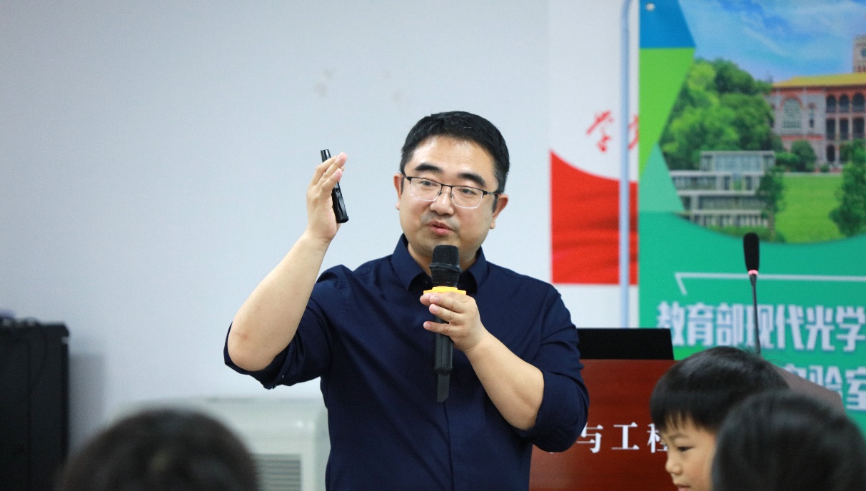 王钦华主任表示,重点实验室的开放活动是我们多年来一直坚持的活动,由于新冠肺炎疫情常态化管理,今年我们回到了线下进行有组织的开放,希望参与活动的朋友能近距离走进光电世界,感受科技魅力。随后,王主任介绍了91网站 光学工程学科建设情况,并围绕新型显示技术、高/超分辨率平面成像技术、超材料与光场(电磁波)调控技术以及柔性光电子与可穿戴器件等热门技术深入浅出的展示了纳米光子学、亚波长光学的最新发展,揭示了光学前沿和技术研究与我们日常生活的密切联系。