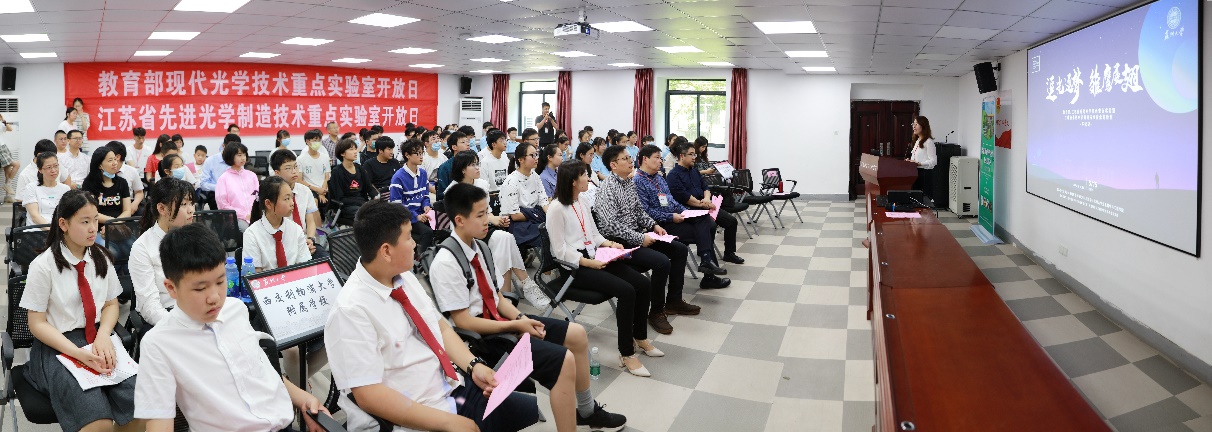 2021年是中国共产党成立100周年,是开启全面建设社会主义现代化国家新征程、向第二个百年奋斗目标进军的开局之年。为认真落实习近平总书记关于激发青少年好奇心的重要指示,根据科技部、中央宣传部、中国科协《关于举办2021年全国科技活动周的通知》(国科发智〔2021〕77号)精神,推动科技创新成果和科学普及活动惠及于民,迎接2021年全国科技活动周暨江苏省第33届科普宣传周的到来,教育部/江苏省现代光学技术重点实验室、江苏省先进光学制造技术重点实验室于2021年5月15日举行了开放日活动,苏州市相城区陆慕高级中学、西交利物浦大学附属学校、苏州市相城区渭塘中学师生代表等100余人参加了活动。